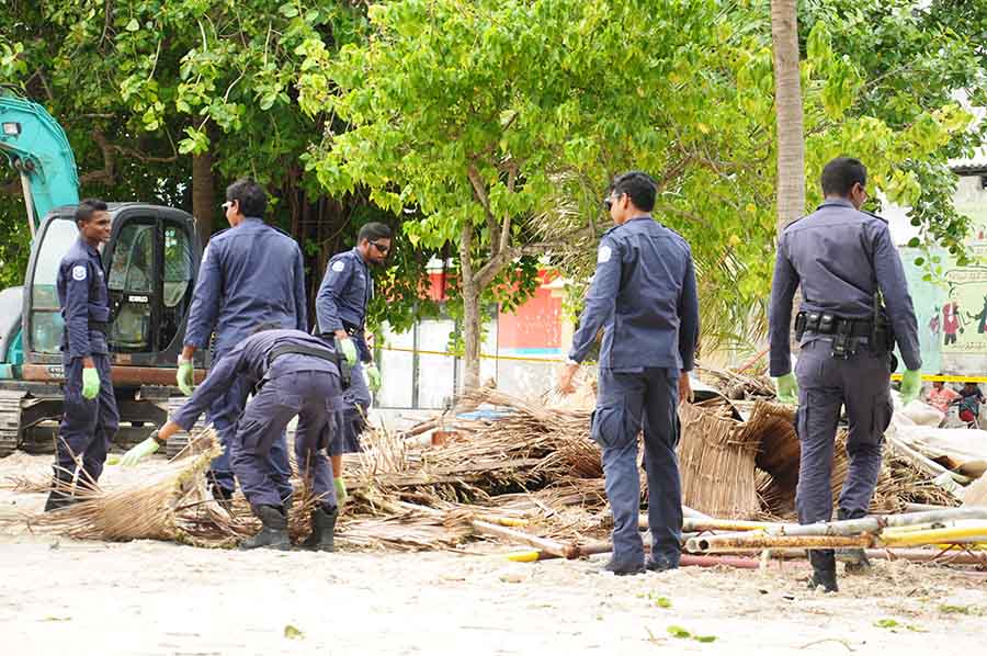 ފުލުހުން ބުނީ ބައެއް ރަށްރަށުގައި ދައުލަތުގެ ބިންތަކުގައި ގަވާއިދާ ހިލާފަށް ހުރި ޖަގަހަ ފަދަ ތަންތަން ނަގައި ބިންތައް ސާފު ކުރުމުގައި އެހީތެރިކަން ފޯރުކޮށްދެމުންދާ ކަމަށެވެ. އެގޮތުން ފުލުހުން ބުނީ މިއަދުގެ ވަގުތެއްގައި ބައެއް ރަށްރަށުގައި ހުރި އެފަދަ ޖަގަހަތައް ނެގުމުގެ މަސައްކަތް ކުރަމުން ގެންދާނެ ކަމަށެވެ.