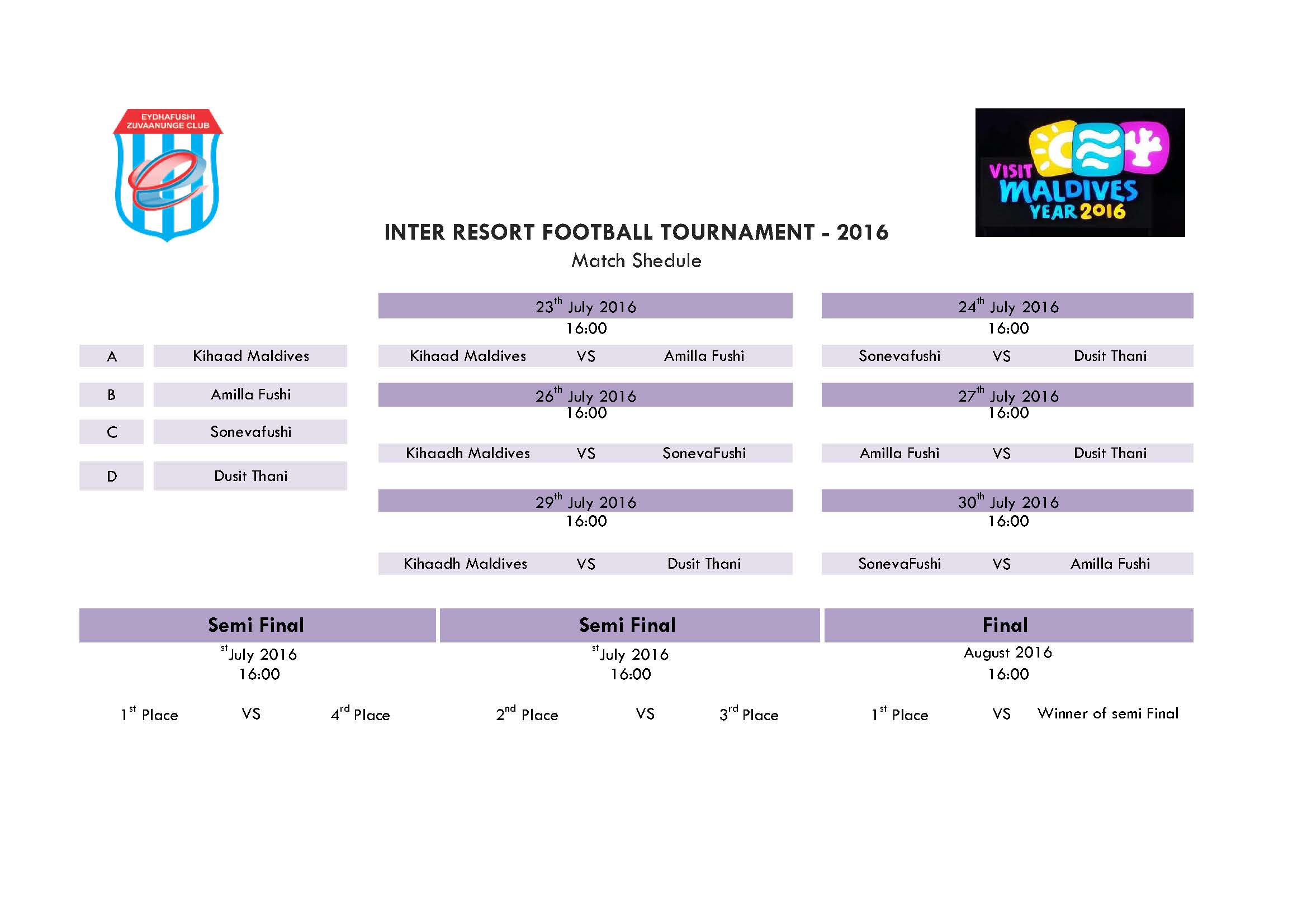 މި މުބާރާތަކީ ވިޒިޓް މޯލްޑިވްސް އިޔަރ 2016 ފާހަގަކުރުމުގެ ގޮތުންނާއި މިއަތޮޅުގެ ރިސޯޓްތަކުގެ މުވައްޒަފުންގެ މެދުގައި ކުޅިވަރުގެ ރޫހު އާލާކުރުމުގެ ގޮތުން ބާއްވާ މުބާރާތެކެވެ.