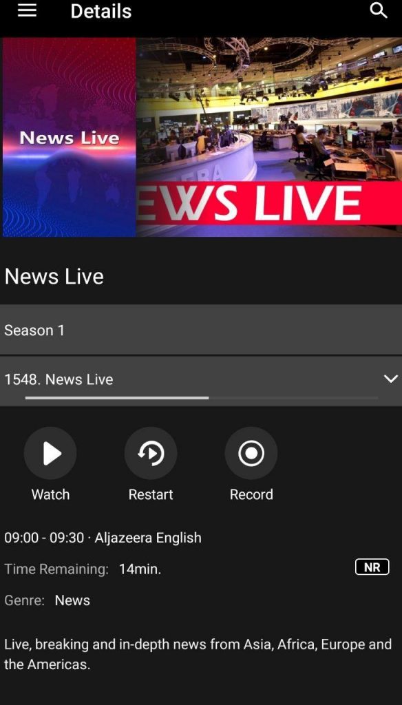 - މި އެޕް މެދުވެރިކޮށް ޗެނަލްތަކުގެ ޕްރޮގްރާމް ގައިޑް ފަސޭހައިން ބަލާލެވޭނެއެވެ. އެގޮތުން ކުރިން ދައްކާފައިވާ ޕްރޮގުރާމްތަކަކީ ކޮބައިކަމާއި ކުރިއަށް އޮތް ދުވަސްތަކުގައި ދައްކަން ހަމަޖެހިފައިވާ ޕްރޮގުރާމްތަށް ވެސް ބަލޭލެވޭނެއެވެ. އަދި ހަމަ އެހެންމެ، މީގައި ހިމެނޭ ކެޗްއަޕް ފީޗަރ އިން ހަދާންނެތިގެން ބޭނުންވާ ޕްރޮގުރާމެއް ބަލާނުލެވިއްޖެ ނުވަތަ ރިކޯޑް ކޮށް ނުލެވިއްޖެ ހާލަތެއްގައި އަލުން އެ ޕްރޮގުރާމެއް ބަލާލެވޭނެއެވެ. ކެޗްއަޕް ފީޗަރ މިވަގުތު އެކުލެވިގެންވަނީ ބައެއް ޗެނަލްތަކުގައިއެވެ.