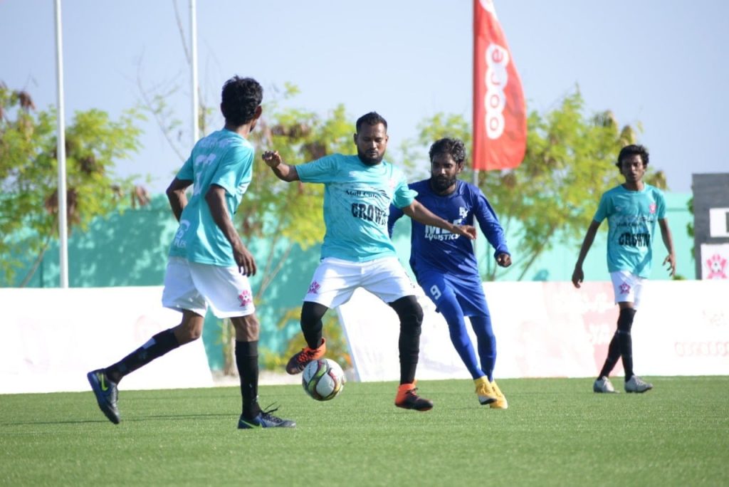 މިއަދު ހަވީރު ބަނަފްސާ ކަންމަތި އާއި އޭދަފުށި ވެޓަރަންސް ބައްދަލުކުރި މެޗުގައި ވެޓަރަންސްގެ ތޮލާލު ބޯޅަ ހިފައިގެން ދާން މަސައްކަތް ކުރަނީ– ފޮޓޯ: ރަޔާން ފޮޓޯސް (އިބްރާހިމް ނަޒީހް)