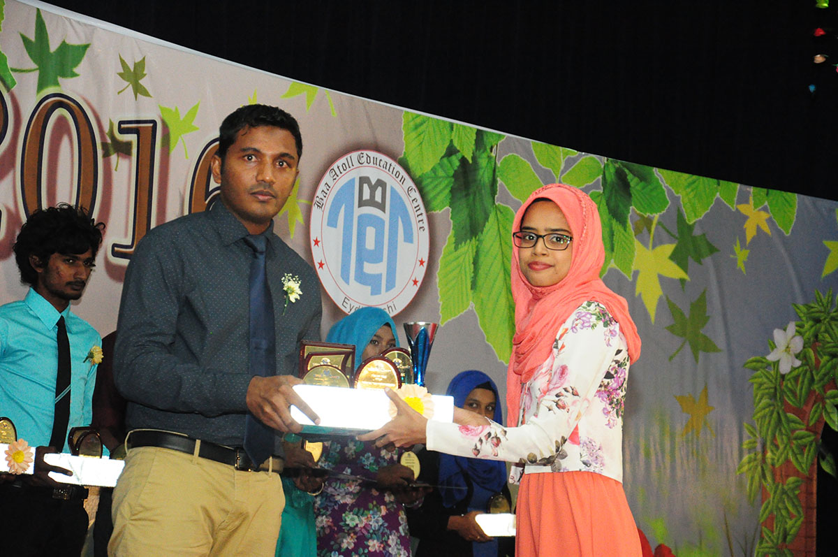 ބ. އަތޮޅު ތައުލީމީ މަރުކަޒުގެ މިދިއަ އަހަރުގެ އަހަރީ އިނާމު ދިނުމުގެ ޖަލްސާ. ސެކަންޑަރީ ބައިން އެއްވަނަ އަޝްހާ އަލީ ވަހީދު އަދި ހަޔަ ސެކަންޑްރީ ބައިން އެއްވަނަ ހޯދީ އިޒްހަތު ޝަމީމު. ރޭ ބޭއްވި އެ ޖަލްސާ ގައި 94 ދަރިވަރުންނަށް ވަނީ އިނާމުދީފައި. އޭގެ ތެރޭގައި އޯލެވެލް އަދި އޭލެވެލް އިމްތިހާނުން ރަން ވަނަތައް ހޯދި ދަރިވަރުން ހިމެނޭ