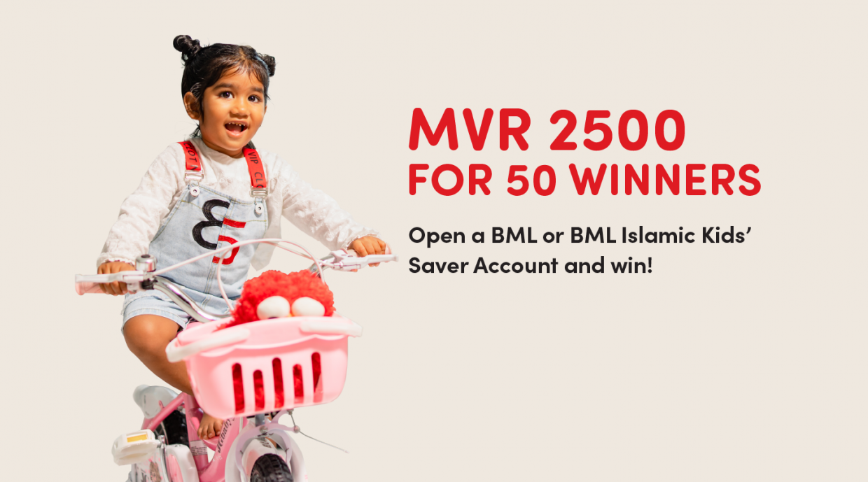 މި ޕްރޮމޯޝަން ކުރިއަށް ދަނީ މިއަދުން ފެށިގެން އަންނަ މަހު 16 ދުވަހުގެ ނިޔަލަށް ކަމަށް ބީއެމްއެލްއިން ބުނެއެވެ. މިއަދު ފެށި ޕްރޮމޯޝަންގެ މުއްދަތުގައި، ކިޑްސް ސޭވަރ އެކައުންޓް ހުޅުވާ ކަސްޓަމަރުންނަށް އިނާމު ހޯދުމުގެ ފުރުސަތު ލިބިގެންދާނެއެވެ.