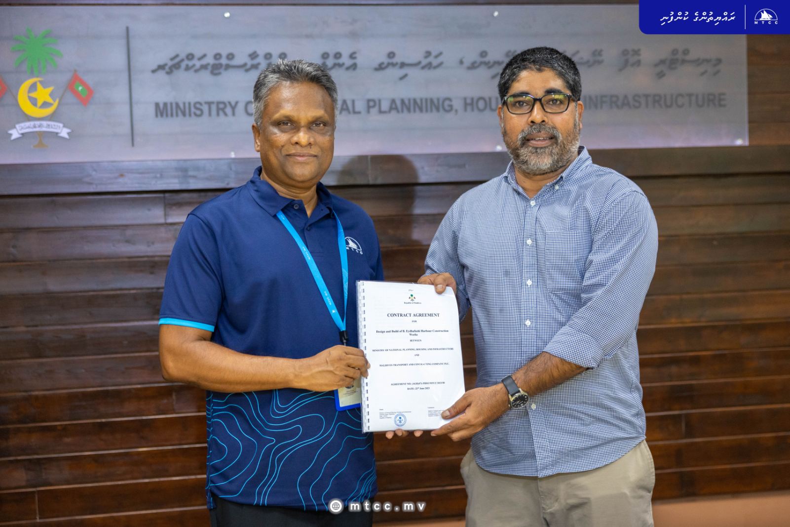 މި މަޝްރޫޢު ހަވާލުކުރުމަށް މިއަދު ބޭއްވި ރަސްމިއްޔާތުގައި، އެމްޓީސީސީގެ ފަރާތުން ސޮއިކުރެއްވީ ޗީފް އެގްޒެކެޓިވް އޮފިސަރ އަލްފާޟިލް އާދަމް އާޒިމްއެވެ. އަދި މިނިސްޓްރީ އޮފް ނޭޝަނަލް ޕްލޭނިންގ، ހައުސިންގ އެންޑް އިންފްރާސްޓްރަކްޗަރގެ ފަރާތުން ސޮއިކުރެއްވީ، ޕަރމަނަންޓް ސެކްރެޓަރީ، އަލްފާޟިލާ ޒީނިޔާ ހަމީދެވެ. 3469 އާއި ލަފާކުރާ އާބާދީއެއް އޮންނަ
