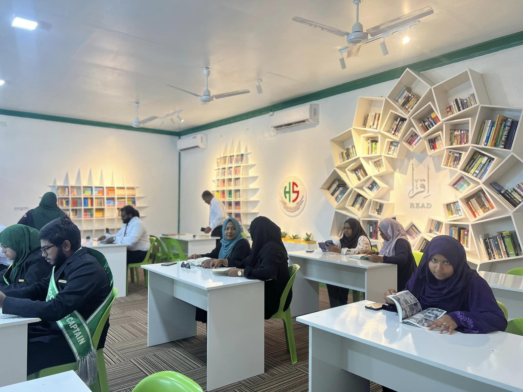ކައުންސިލުން ވަނީ އެ ސްކޫލުގައި ކުރިން ހުރި ލައިބްރަރީގައި ފޮތްތައް ބަހައްޓާ ރެކުތައް އާކޮށް، ކުދިން ކިޔަވަން ތިބޭނެ “ރީޑިން އޭރިޔާތައް” ގާއިމް ކޮށްފަ އެވެ.