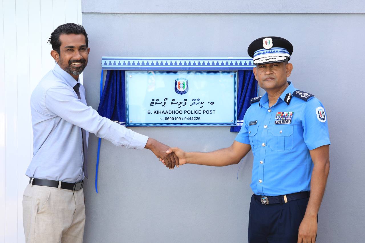 ކިހާދޫ ޕޮލިސް ޕޯސްޓު ހުޅުވައިދެއްވީ ކޮމިޝަނަރ އޮފް ޕޮލިސް ޢަލީ ޝުޖާއު އާއި ކިހާދޫ ކައުންސިލު ރައީސް ހުސައިން ޝާފިއުއެވެ.