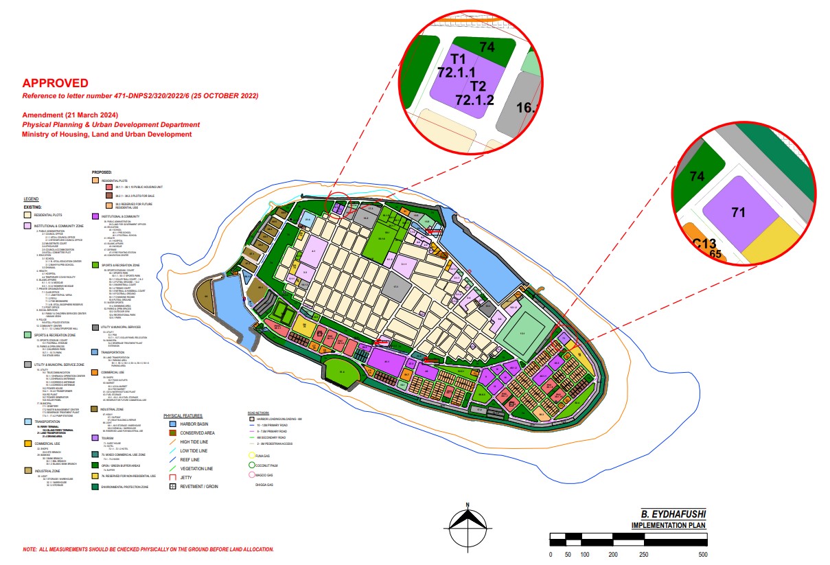 އޭދަފުށީ ކައުންސިލް އިދާރާ އިން ކުރި އިއުލާނެއްގައި ބުނީ، ލޭންޑް ޔޫސް ޕްލޭނާ އެއްގޮތަށް އޭދަފުށީގެ ހުޅަނގު އުތުރު ދިރާގާ ދިމާލު އަތިރިމަތީ ސަރަހައްދުންނާއި ޓާފު ދަނޑުގެ އިރު އުތުރުން 10،000 އަކަފޫޓޫގެ ދެ ބިމެއް ބިމެއް 50 އަހަރަށް ކުއްޔަށް ދޫކުރަން ނިންމާފައިވާ ކަމަށެވެ.