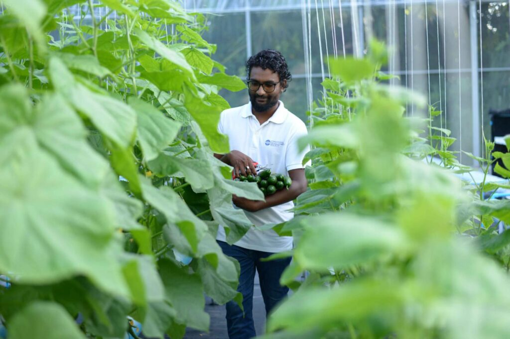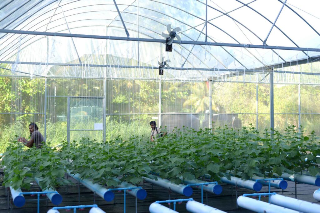 މި މަޝްރޫޢުގެ ދަށުން އެރަށުގައި ވަނީ ހައިޑްރޯޕޯނިކް ސިސްޓަމް ހިމެނޭ ގްރީންހައުސްއެއް ޤާއިމުކޮށްފައެވެ. ކިއުކަމްބާ އަދި ލެޓިއުސް ހެއްދުމަށް ޚާއްޞަކޮށްފައިވާ 4 ހައިޑްރޯޕޯނިކް ސިސްޓަމް މި ގްރީންހައުސްގައި ހިމެނެއެވެ. ކޮންމެ ސިސްޓަމެއްގައި 180 ސްލޮޓް ހިމެނޭއިރު، އެއްފަހަރާ 100 އަށްވުރެ ގިނަ ގަސް މި ނިޒާމުން ހެއްދޭނެއެވެ.