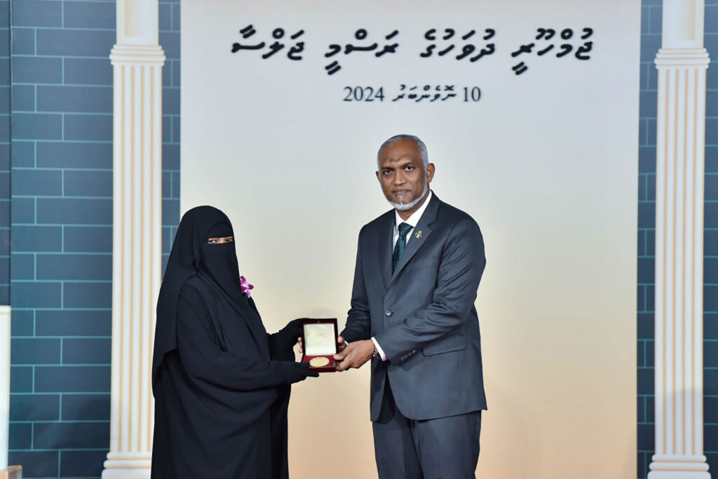 ޚާއްޞަ އިނާމު ލިބިވަޑައިގެންނެވި ބޭފުޅުންނަށް ރައީސުލްޖުމްހޫރިއްޔާ ދެއްވީ މެޑެއްޔަކާއި، ހަނދާނީ ލިޔުމެކެވެ.