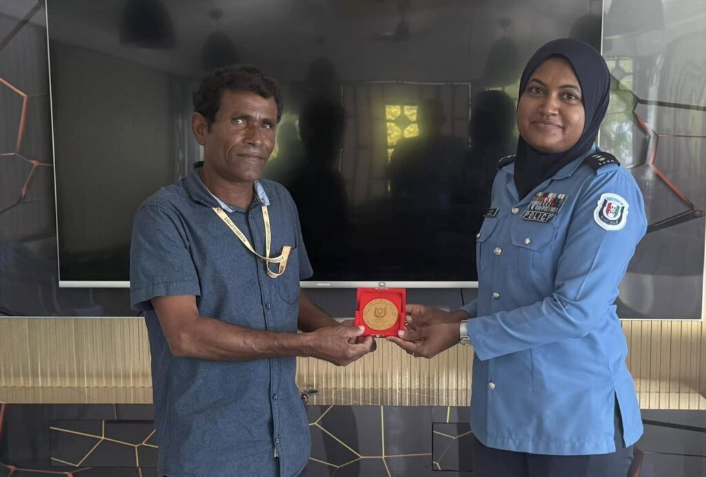 ބ. އޭދަފުށީ ފަޅުތެރެއަށް ވެއްޓުނު ބިދޭސީއެއްގެ ފުރާނަ ސަލާމަތްކުރި ދެ ފަރާތަކަށް ހިދުމަތުގެ އަގު ވަޒަންކުރުމުގެ ގޮތުން ބ. އަތޮޅު ފުލުހުން ހަނދާނީ މެޑައްޔެއް ދީފި އެވެ.