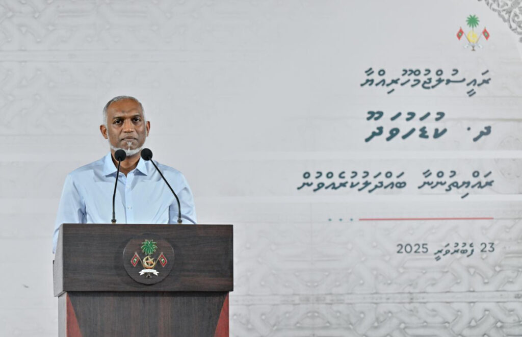 ކުޑަހުވަދޫގެ ރައްޔިތުންނާ ބައްދަލުކުރައްވައި ރައީސް މުއިއްޒު ރޭ ވާހަކަފުޅު ދައްކަވަނީ.—ފޮޓޯ: ރައީސް އޮފީސް