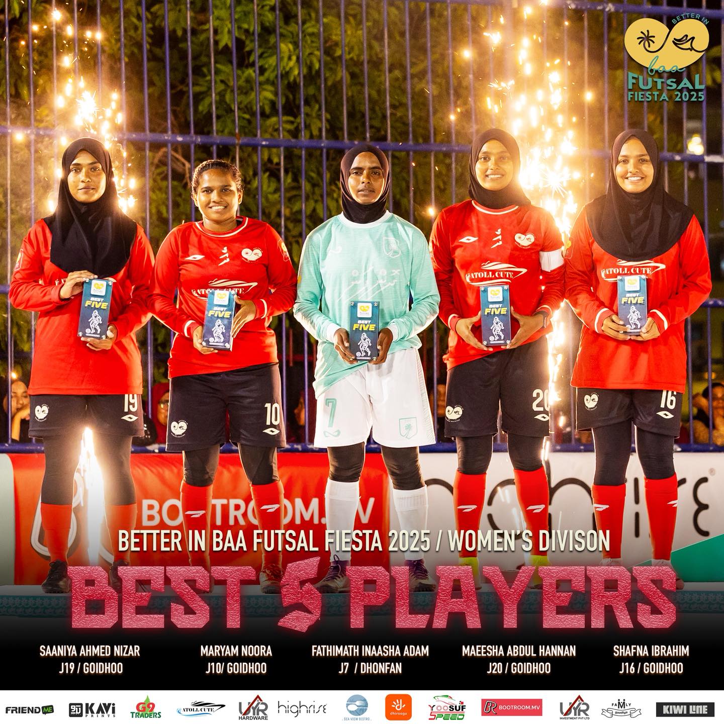 އަންހެން ޑިވިޝަންގެ އެންމެ މޮޅު ފަސްކުޅުންތެރިންނަށް ހޮވުނީ ގޮއިދޫ ޓީމުގެ މައިޝާ އާއި ސާނިޔާ އަހްމަދު ނިޒާރު އާއި މަރިޔަމް ނޫރާ އާއި ޝަފްނާ އިބްރާހީމުގެ އިތުރުން ދޮންފަނު ޓީމުގެ ފާތުމަތު އިނާޝާ އާދަމު އެވެ.