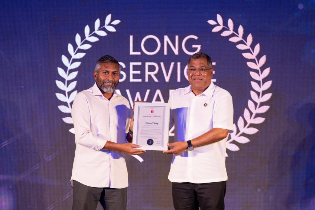 އެ ރަސްމިއްޔާތުގައި ބޭންކަށް 15، 20، 30 އަދި 40 އަހަރު ޚިދުމަތްކުރެއްވި މުވައްޒަފުންނަށް އެވޯޑު ހަވާލުކޮށްދެއްވީ ބީއެމްއެލްގެ ޗެއާޕަރސަން އަޙްމަދު ޢަލީ ޙަބީބްއާއި ބޯޑު މެންބަރުންނެވެ.