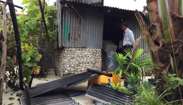 ރޭ ގަދަ ވަޔާއެކު ކުރި ވިއްސާރައިގައި ތުޅާދޫ ގެއެއްގެ ބަދިގޭގެ ފުރާޅު އެއްލާލާފައި. ފޮޓޯ/ތުޅާދޫ އޮންލައިން