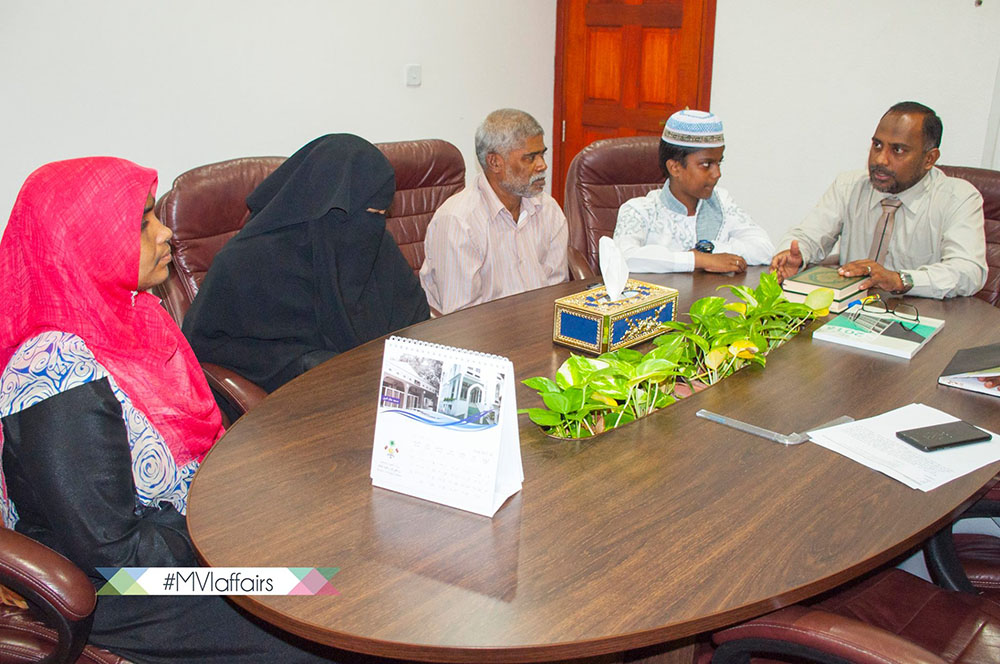 އިންޑިޔާގައި ކީރިތި ޤުރުއާން ހިތުދަސްކުރުމުގެ މަސައްކަތް ފުރިހަމަކުރި، މިހާރު އެނބުރި އިންޑިއާގެ ދިއުމަށް މާލެގޮސްހުރި މުސްތަފާއާ، އިސްލާމިކް މިނިސްޓަރު ބައްދަލު ކުރެއްވީ އިސްލާމިކް މިނިސްޓަރީގައި މިއަދު މެންދުރު އެވެ.