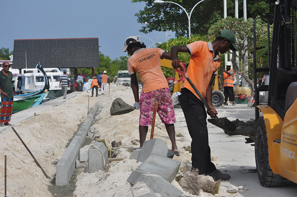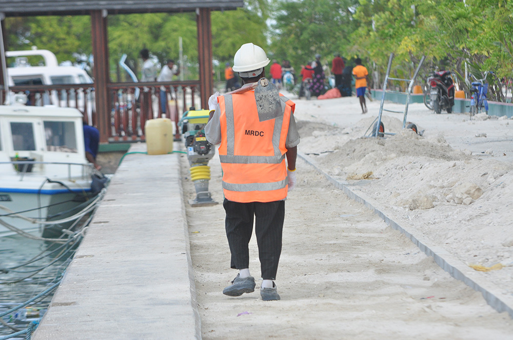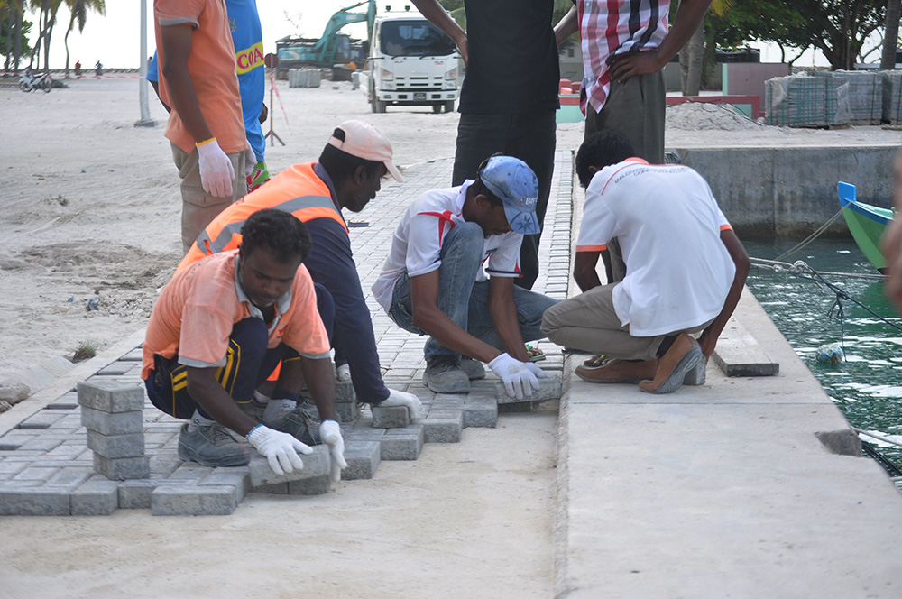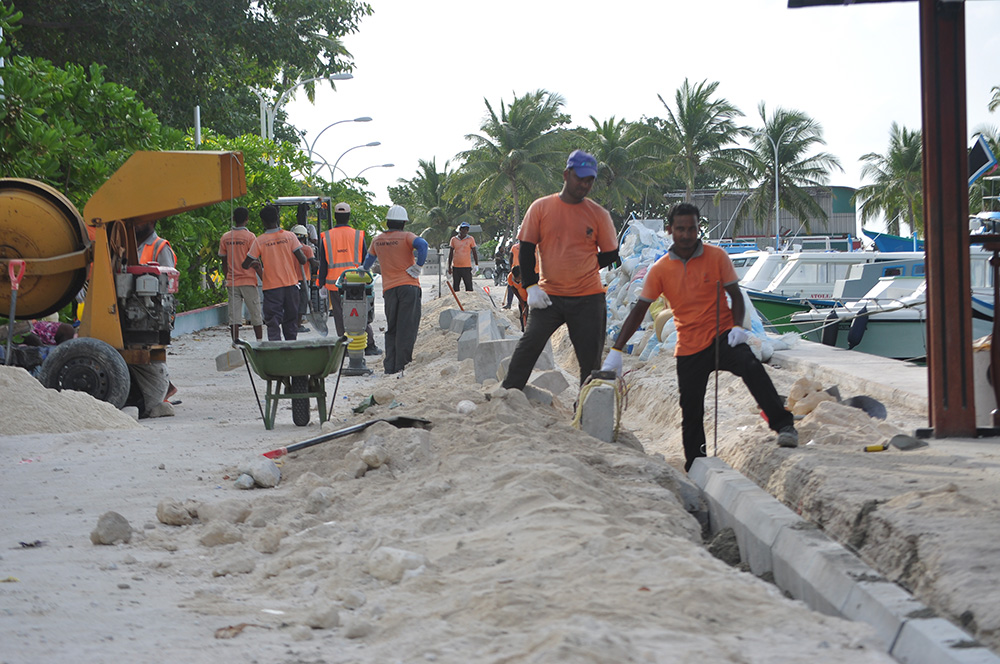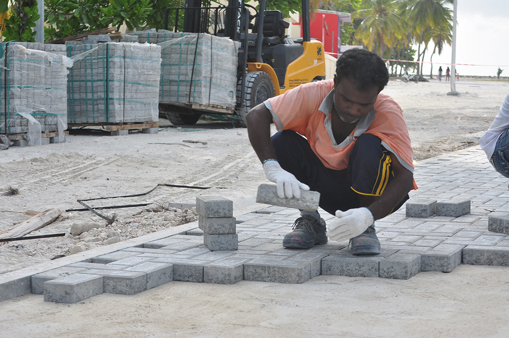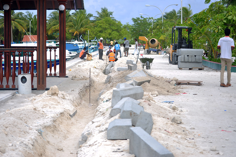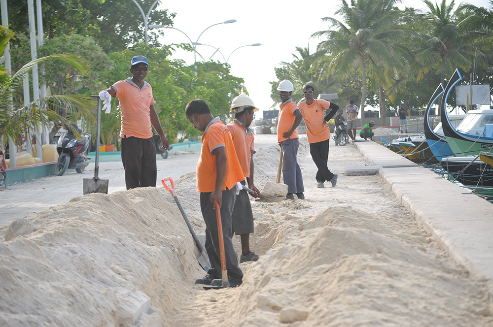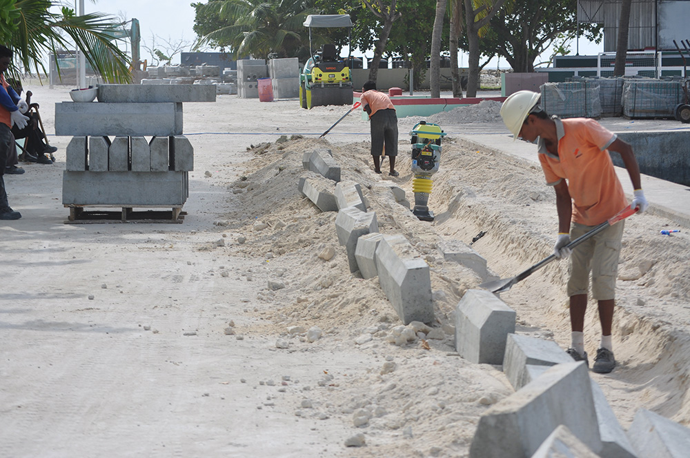 ބަނދަރު މަގުގެ ޕޭވްމަންޓް ހެދުމުގެ މަސައްކަތް ކުރަނީ | އީޓީ ފޮޓޯ:ރާއިފް ޔޫސުފް