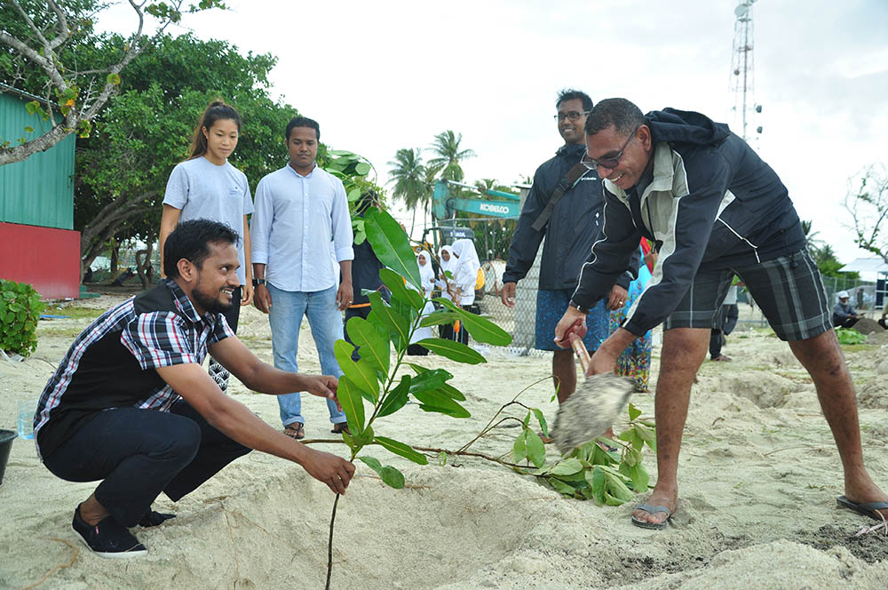 އެ ޕްރޮގްރާމްގެ ދަށުން މިއަދު ހަވީރު ވަނީ ރަށުގެ އުތުރު ފަރާތު ސްޓޭޖް ސަރަހައްދުގައި ހިޔާދޭ ބޮޑެތި ގަސްތައް އިންދައި ކުނި އެޅުމަށް ހާއްސަ ޑަސްބިންތަކެއް ވެސް ބަހައްޓައިފަ އެވެ.