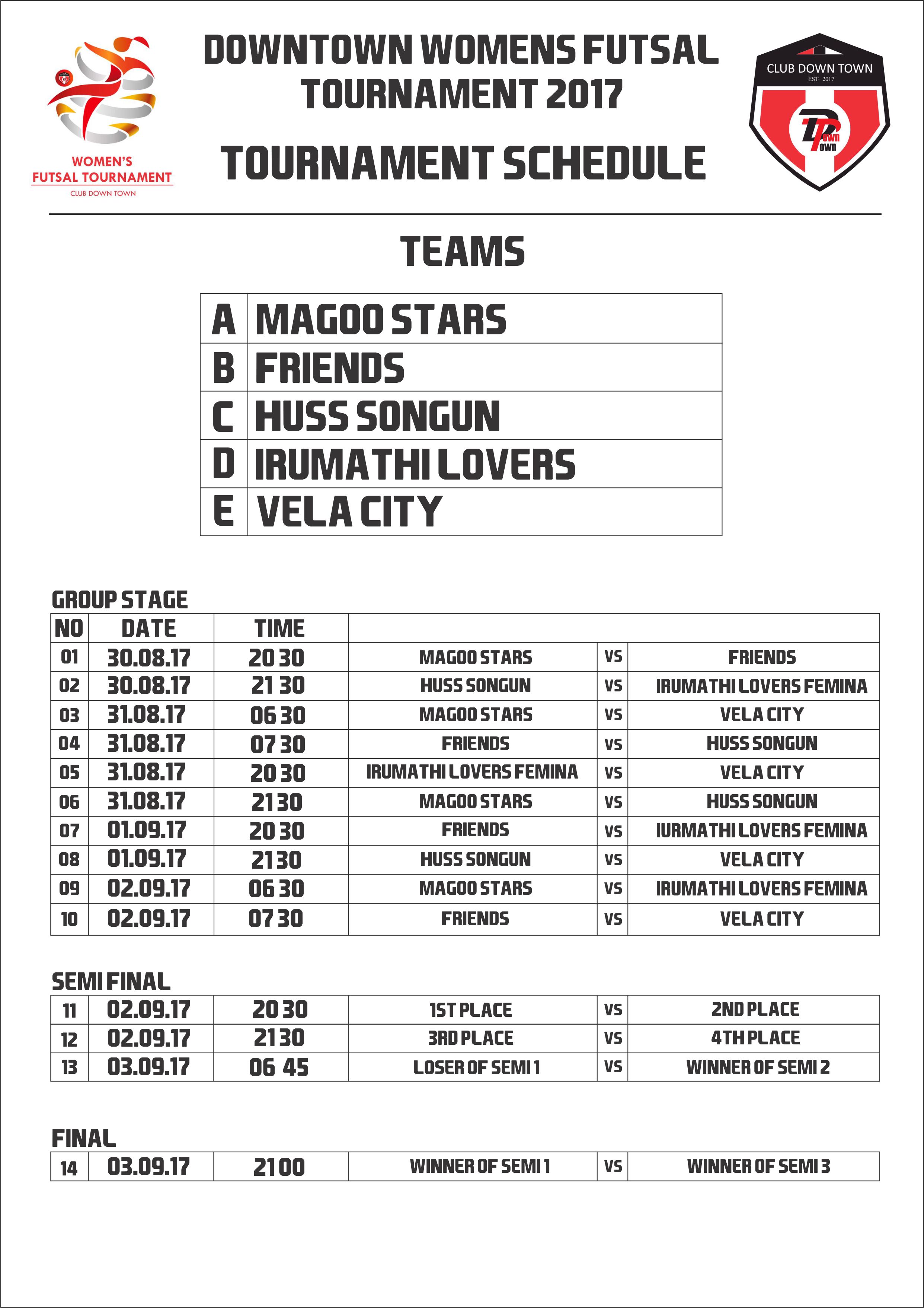 ލީގު އުސޫލުން ކުރިއަށްގެންދިއުމަށް ހަމަޖެހިފައިވާ މި މުބާރާތް ކުރިޔަށް ދާނީ މިމަހު 30 އިން އަންނަ މަހުގެ 3 ވަނަ ދުވަހުގެ ނިިޔަލަށެވެ.