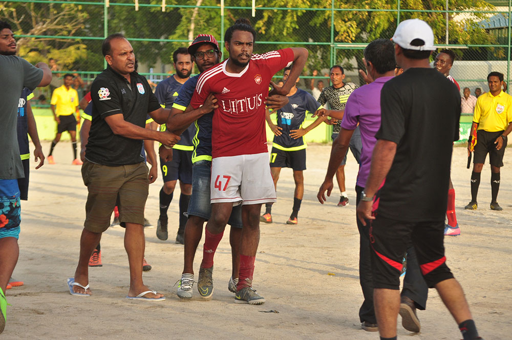 މެޗަށްފަހު އެމް.އޭ ޔުނައިޓެޑްގެ ހުސައިން ޝިހުބާން ވަނީ 2 ފަހަރެއްގެ މަތިން ދަނޑުގައި ހަމަނުޖެހުން ހިންގާފައެވެ. މި ހަމަނުޖެހުން ކޮންޓްރޯލް ކޮށްފައިވަނީ ދަނޑުގެ ސެކިއުރިޓީ ބަލައްހައްޓަން ތިބި ފުލުހުންނާއި އެމް.އޭ ޔުނައިޓެޑްގެ އޮފިޝަލުންގެ އިތުރުން އާންމުންގެ އެހީތެރިކަމާވެސް އެކުގައެވެ.