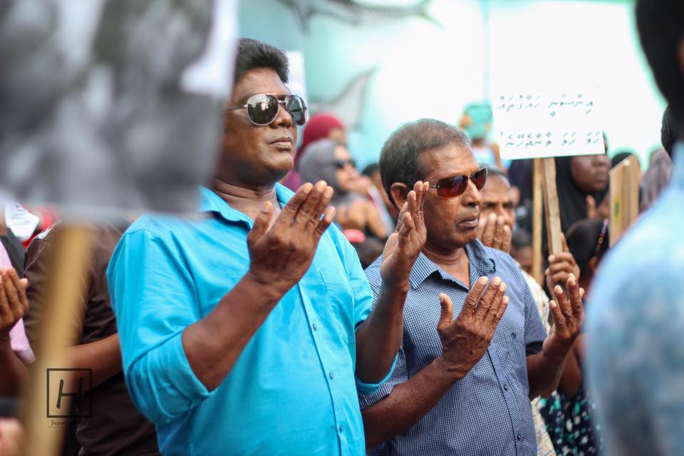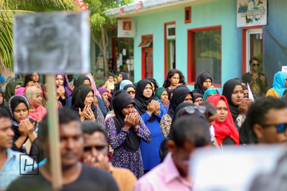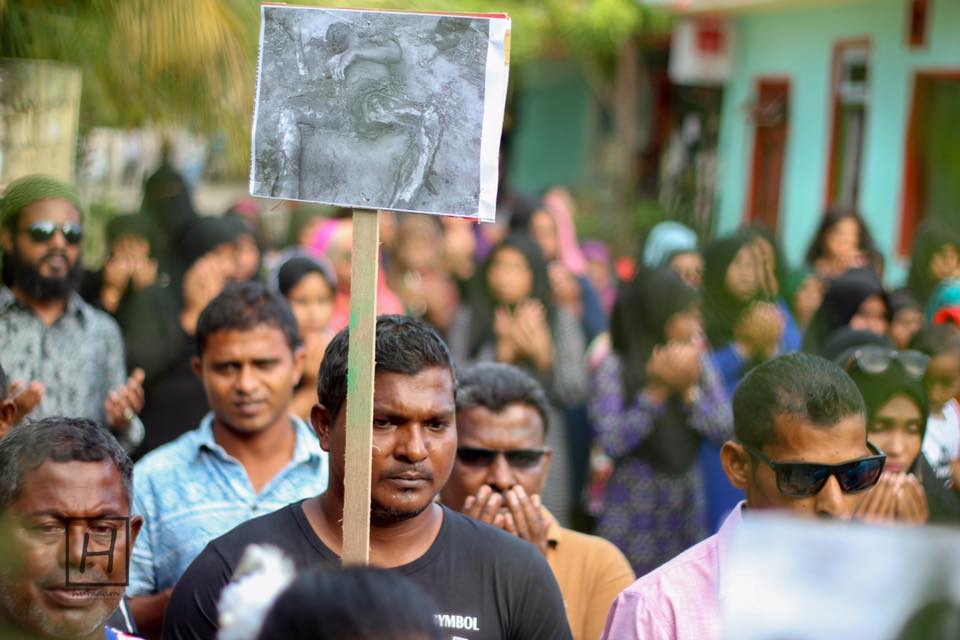 ރޮހިންޖާ މީހުންނާ ދެކޮޅަށް ހިންގާ އަމަލުތަކާ ގުޅިގެން ބ. ކަމަދޫގައި އަޑު އުފުލަނީ. ފޮޓޯ/ޓެޑީ ހުމާމު
