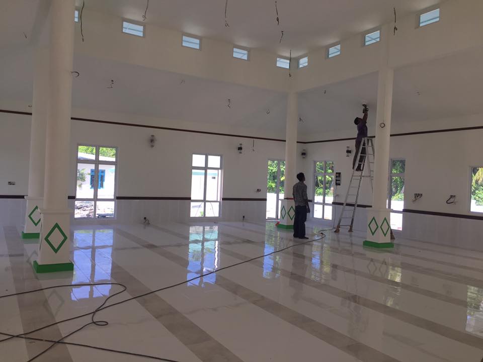 “މިހާރު ކުރިއަށްދަނީ މިސްކިތުގެ ލައިޓްތައް ހަރުކުރުމާއި އޭސީ ސޮކެޓްތައް ހަރުކުރުމުގެ މަސައްކަތް. މުންނާރުގައި ކުލަލާވެސް ނިންމާލަނީ، އެހެން ހުރިހާ ކަމެއް ނިމިފަހުރީ،”