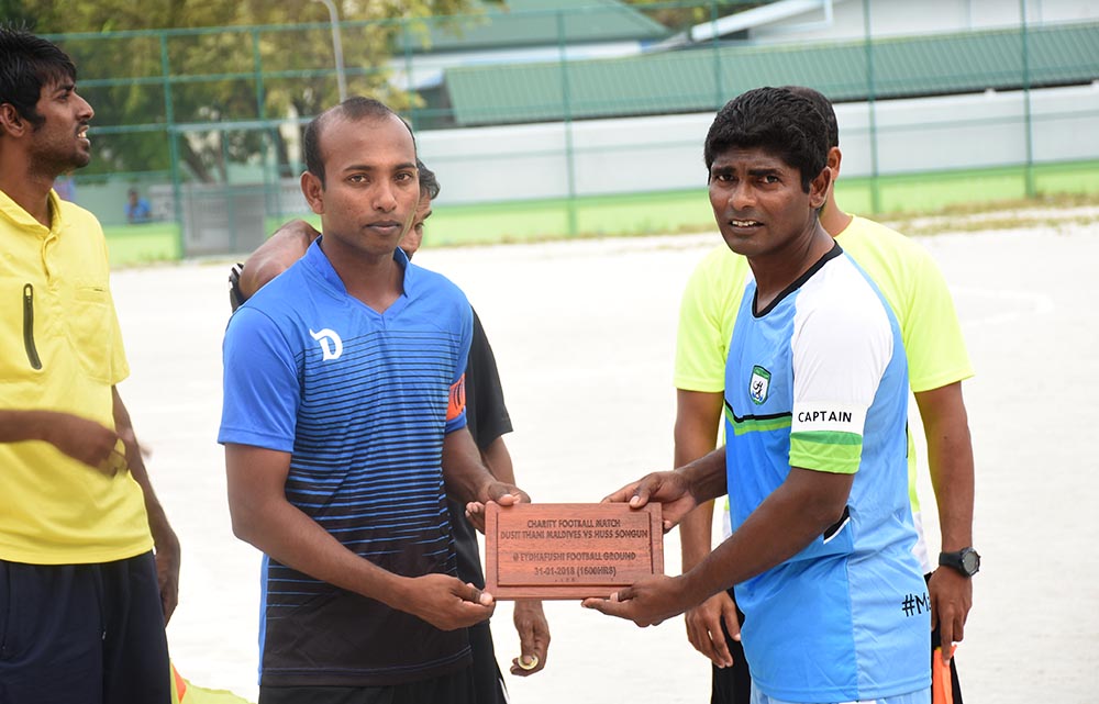 އެގޮތުން މިއަދުގެ މެޗު ކާމިޔާބުކޮށްގެން ހުސްސޮނގުން ޓީމަށް ލިބުނު 5000 ރުފިޔާ އާއި ޑުސިޓް ތާނީ މޯލްޑިވްސް ރިސޯޓުން އެހީގެ ގޮތުގައި 6000 ރުފިޔާ ބ. އަތޮޅު ފެމިލީ އެންޑް ޗިލްޑްރަން ސާވިސް ސެންޓަރަށް ވަނީ ހަދިޔާކޮށްފަ އެވެ.