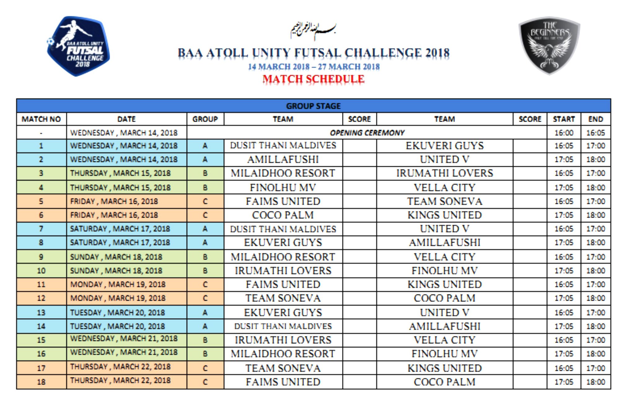 ފުރަތަމަ މެޗުގައި ބައްދަލުކުރާ ދެ ޓީމުގެ އިތުރުން ގްރޫޕް އޭ ގައި ދެން ހިމެނެނީ އަމިއްލަ ފުއްޓާއި ޔުނައިޓެޑް ވީ އެވެ. ގްރޫޕް ބީ ގައި ހިމެނެނީ މިލައިދޫ އައިލެންޑް ރިސޯޓާއި، ފިނޮޅު ރިސޯޓްގެ އިތުރުން އިރުމަތީ ލަވާސް އަދި ވެލާ ސިޓީ އެވެ. ގްރޫޕް ސީ ގައި ހިމެނެނީ އެންމެފަހުގެ ޗެމްޕިއަން ފެއިމްސް ޔުނައިޓެޑް އާއި ޓީމް ސޮނެވާ އާއި ކޮކޯޕާމް އަދި ކިންގްސް ޔުނައިޓެޑް އެވެ.