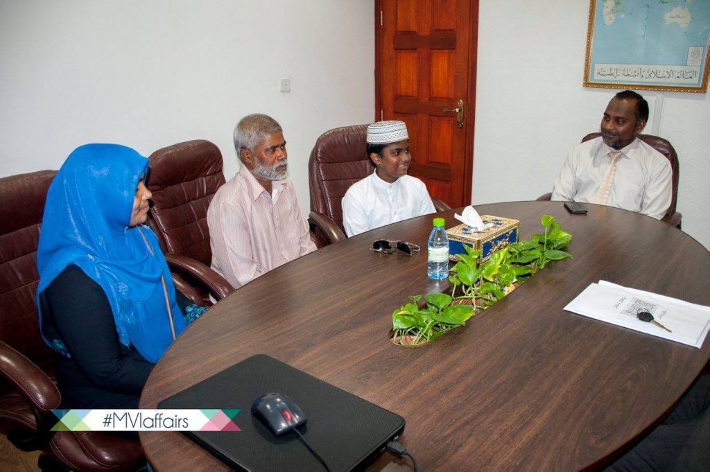 މުސްޠަފާ އާއި ބައްދަލުކުރައްވައި އިސްލާމިކް މިނިސްޓަރު ވަނީ އޭނާއަށް އެ މުބާރާތުގައި ބައިވެރިވުމުގެ ފުރުސަތު ލިބުނު ކަމުން އުފާކޮށް އޭނާއަށް ހިތްވަރު ދެއްވާފަ އެވެ. އަދި މުބާރާތުގައި ރާއްޖެ ފަހުރުވެރިވާ ފަދަ ވަނައެއް ހޯދުމަށް ގަދައަޅައި މަސައްކަތްކުރުމަށް ނަސޭހަތްތެރިވެ ވަޑައިގަތެވެ. އިސްލާމިކް މިނިސްޓްރީގައި ބޭއްވި އެ ބައްދަލުވުމުގައި މުސްޠަފާގެ އާއިލާގެ ބޭފުޅުންވެސް ބައިވެރިވެވަޑައިގަތެވެ.