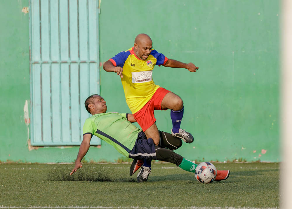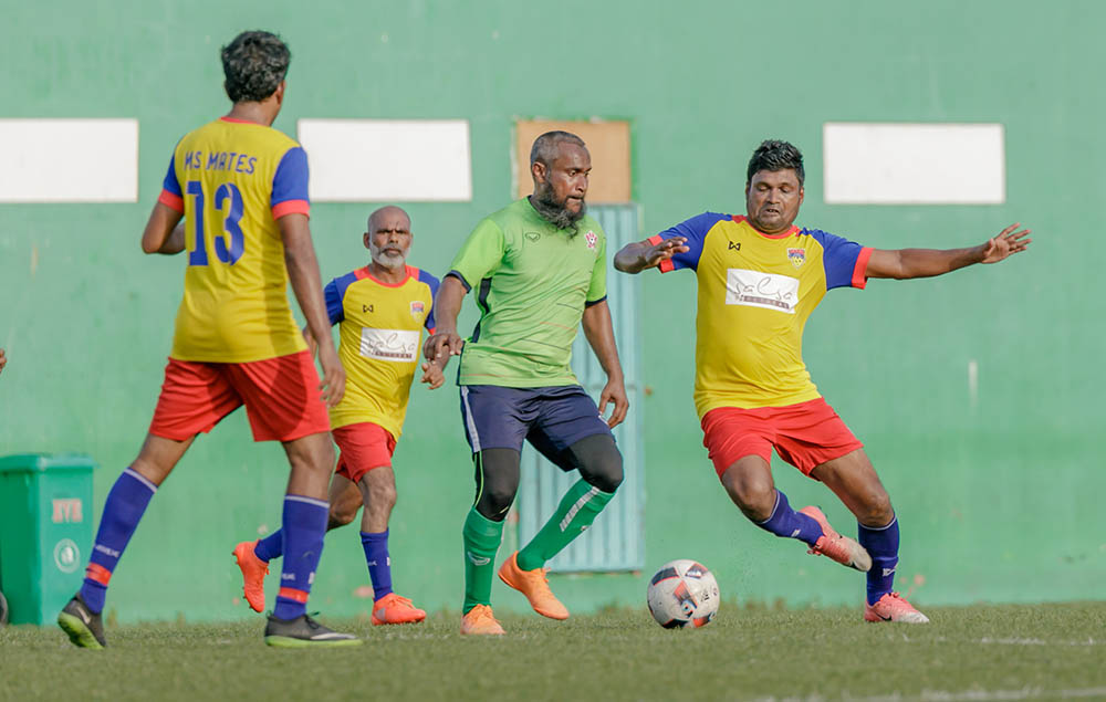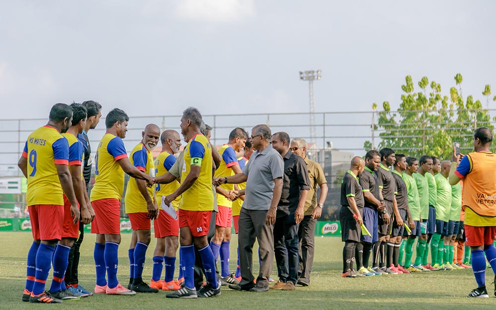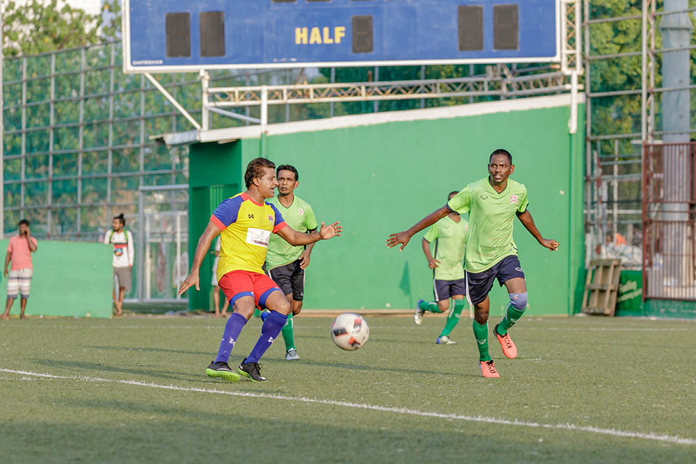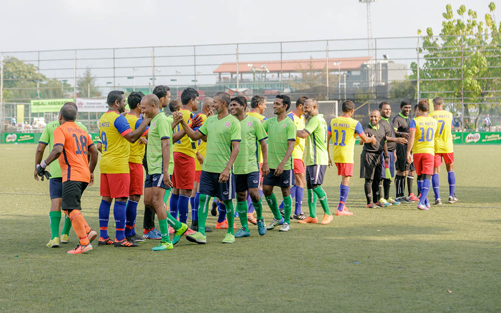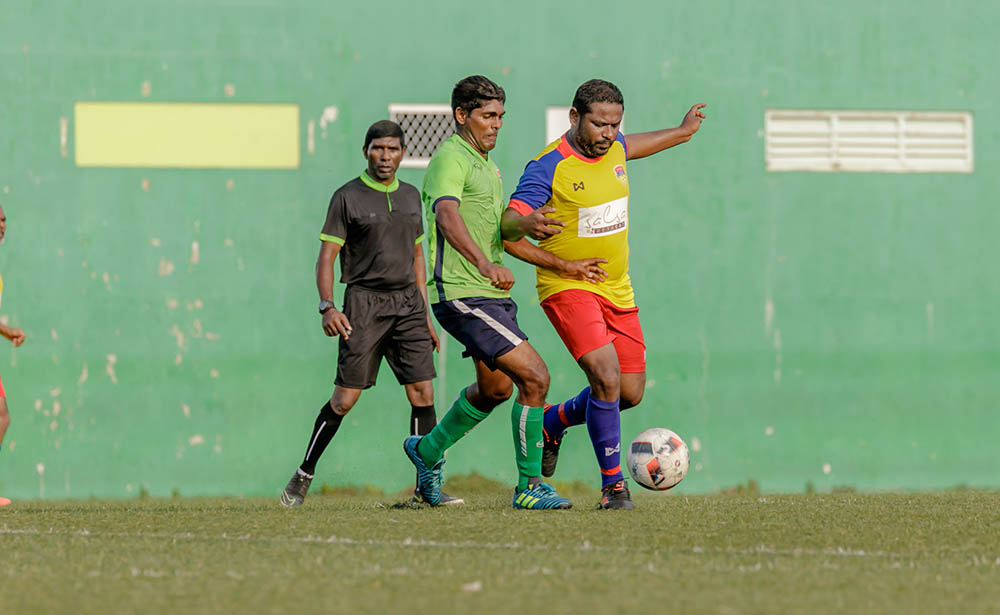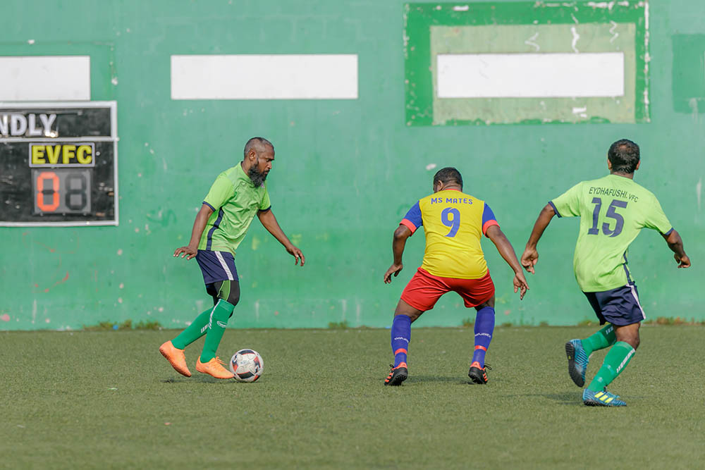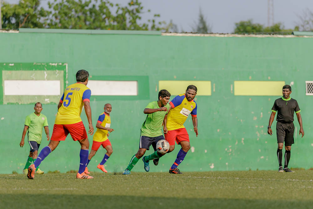 މާލޭގައި މިދިޔަ ހުކުރު ދުވަހު ހަވީރު އޭދަފުށީ ވެޓަރެންސް ޓިމާއި މޯލްޑިވްސް ސޮކާ މޭޓްސް އާ އެކު ކުޅުނު އެކުވެރިކަމުގެ މެޗުގެ ބައެއް ފޮޓޯތައް. މި މެޗު މޯލްޑިވްސް ސޮކާ މޭޓްސް އިން ކާމިޔާބުކުރީ 5-2 އިން. ފޮޓޯތައް؛ ރަމޯން ކަމާލުއްދީން / ސަލްސާ ރިޓްރީޓްގެ ހެޔޮއެދުންތަކާއެކު