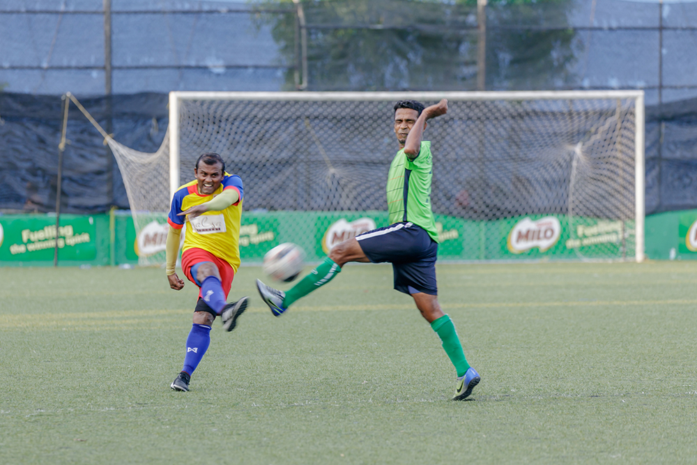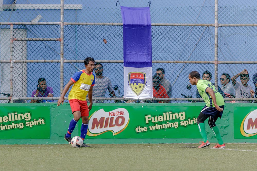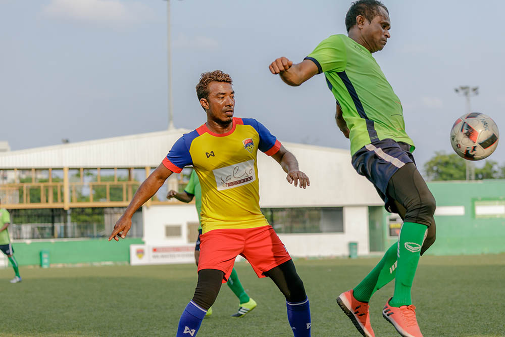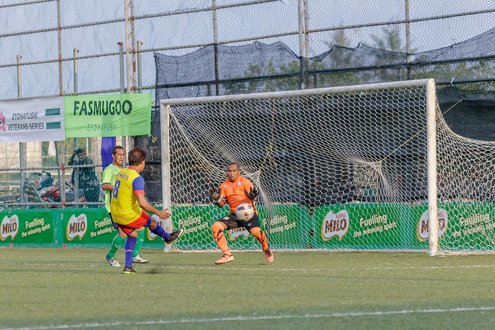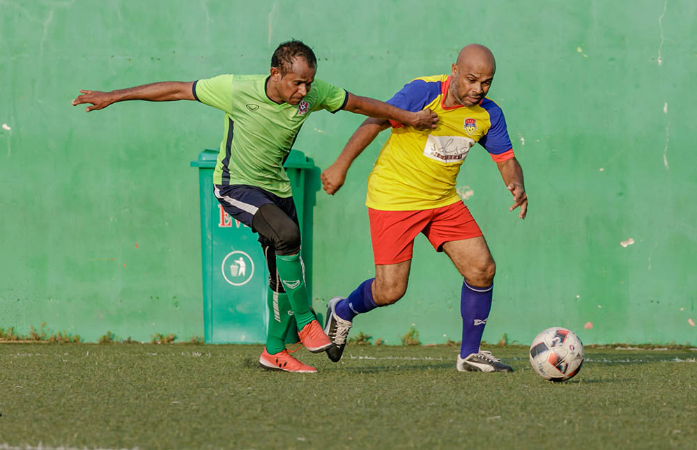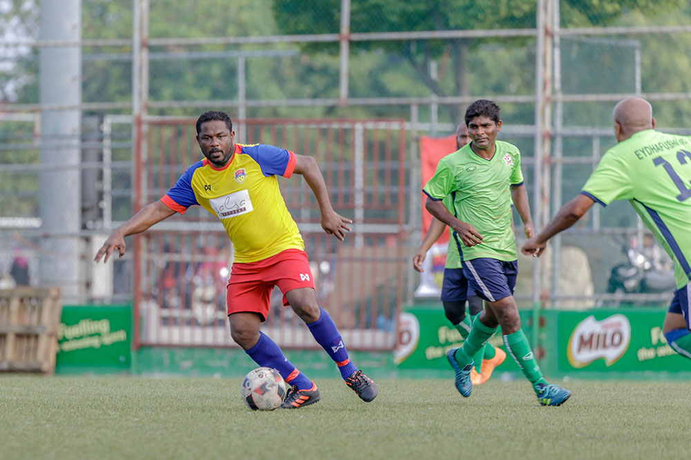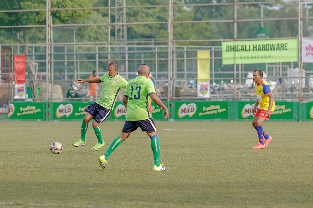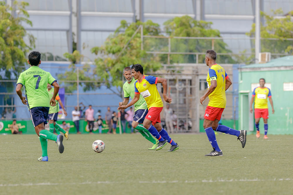 މާލޭގައި މިދިޔަ ހުކުރު ދުވަހު ހަވީރު އޭދަފުށީ ވެޓަރެންސް ޓިމާއި މޯލްޑިވްސް ސޮކާ މޭޓްސް އާ އެކު ކުޅުނު އެކުވެރިކަމުގެ މެޗުގެ ބައެއް ފޮޓޯތައް. މި މެޗު މޯލްޑިވްސް ސޮކާ މޭޓްސް އިން ކާމިޔާބުކުރީ 5-2 އިން. ފޮޓޯތައް؛ ރަމޯން ކަމާލުއްދީން / ސަލްސާ ރިޓްރީޓްގެ ހެޔޮއެދުންތަކާއެކު
