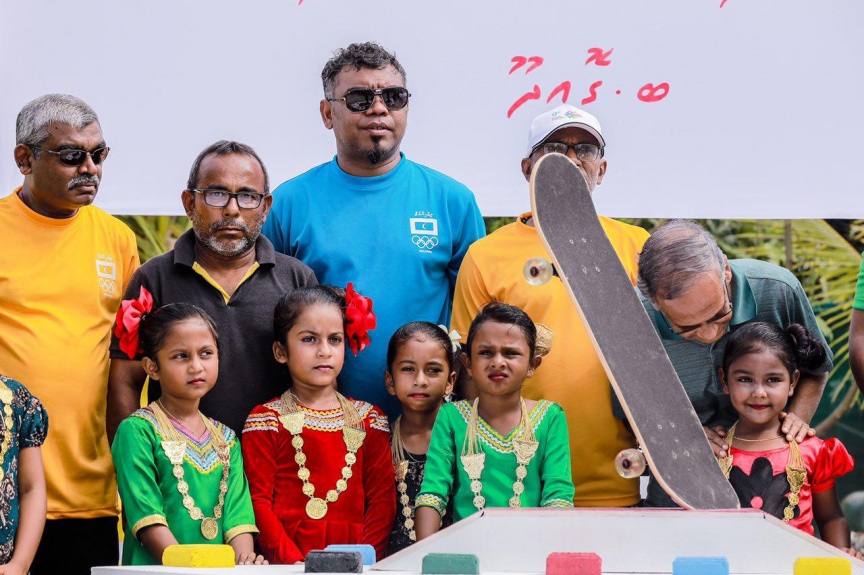 ރަނގަޅު ފެންވަރެއްގައި ސްކޭޓް ބޯޑު ހުނަރުތައް ތަރައްގީކުރުމަށް އެރަށުގެ ޒުވާން ކުދިންނަށް ފުރުސަތު ފަހިކޮށްދިނުމުގެ ގޮތުން އޮލިމްޕިކް ކޮމިޓީއާއި ރަށުގެ ރައްޔިތުން ގުޅިގެން އަޅާ ސްކޭޓް ބޯޑު ޕާކުގެ ބިންގާ އެޅުމުގެ ރަސްމިއްޔާތު ޝަރަފުވެރިކޮށްދެއްވީ ރާއްޖޭގެ ވަރުގަދަ ކުޅިވަރު ޝަހުސިއްޔަތު ޑރ. މުހައްމަދު ޒާހިރު ހުސައިންއެވެ.
