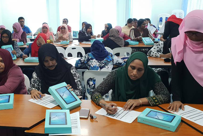 ސްކޫލުތައް ޑިޖިޓައިޒްކޮށް ޓީޗަރުން ބޭނުންކުރާނެ ޓެބްލެޓް އެޑިއުކޭޝަން މިނިސްޓްރީން ބ. އަތޮޅު ސްކޫލުތަކުގެ ޓީޗަރުންނަށް ހަވާލުކުރަން ފަށައިފި އެވެ.