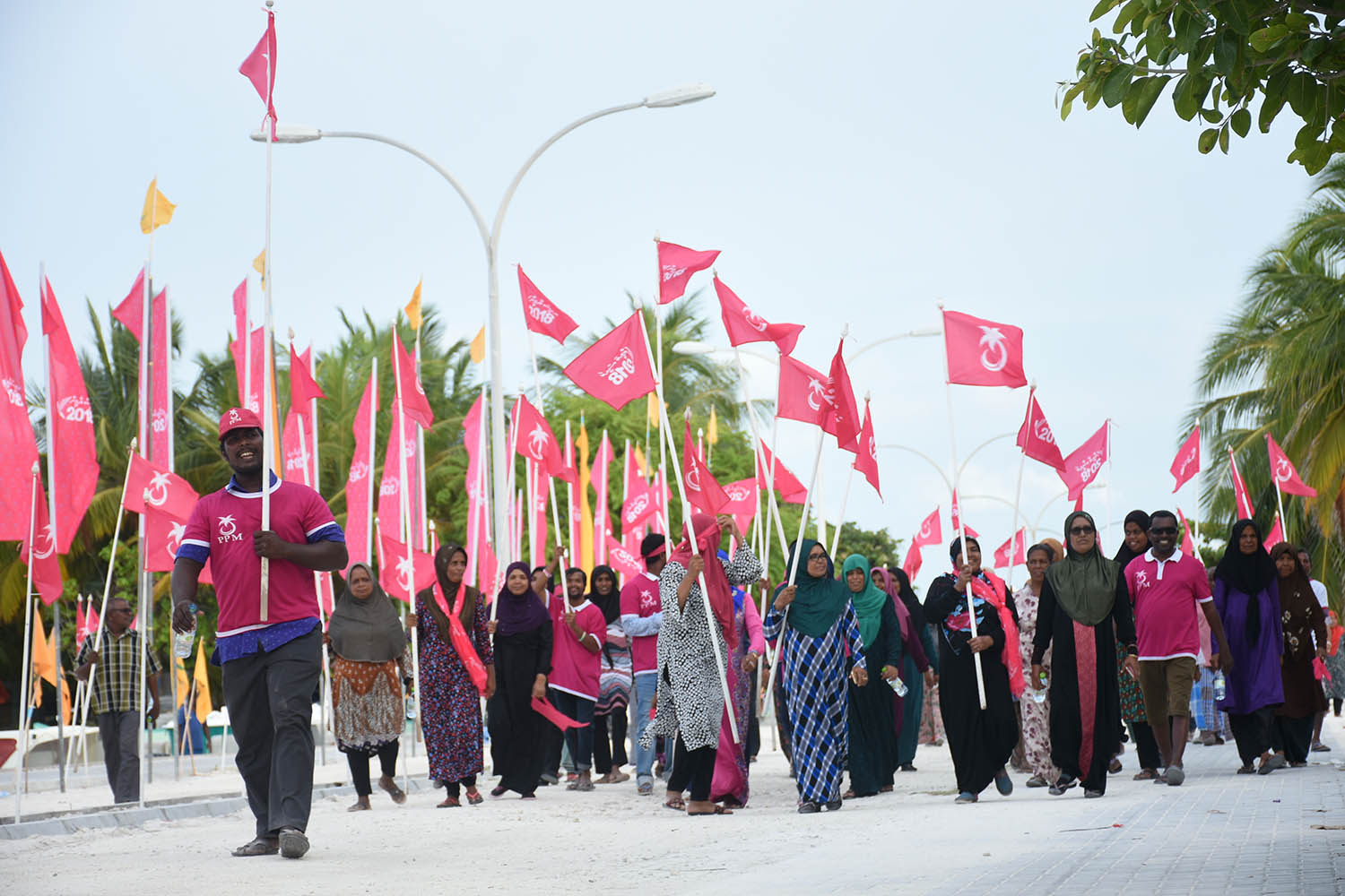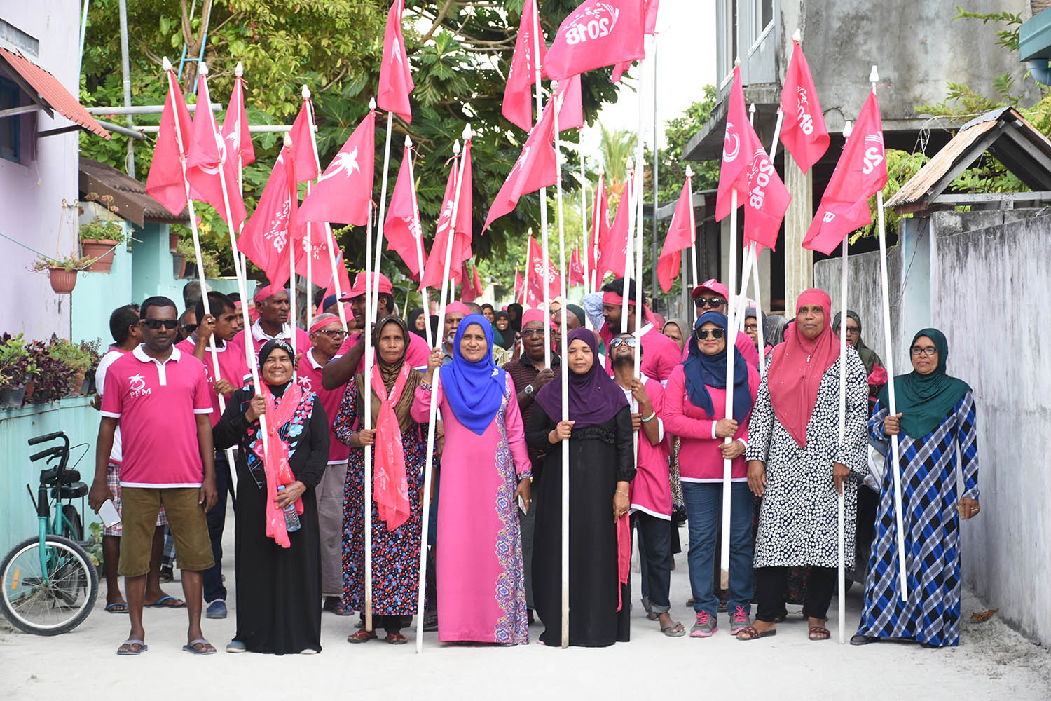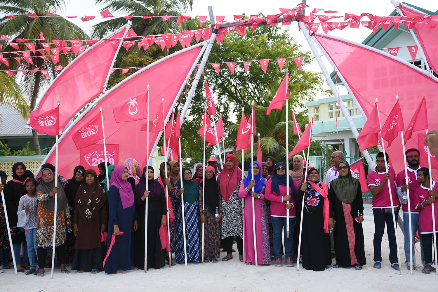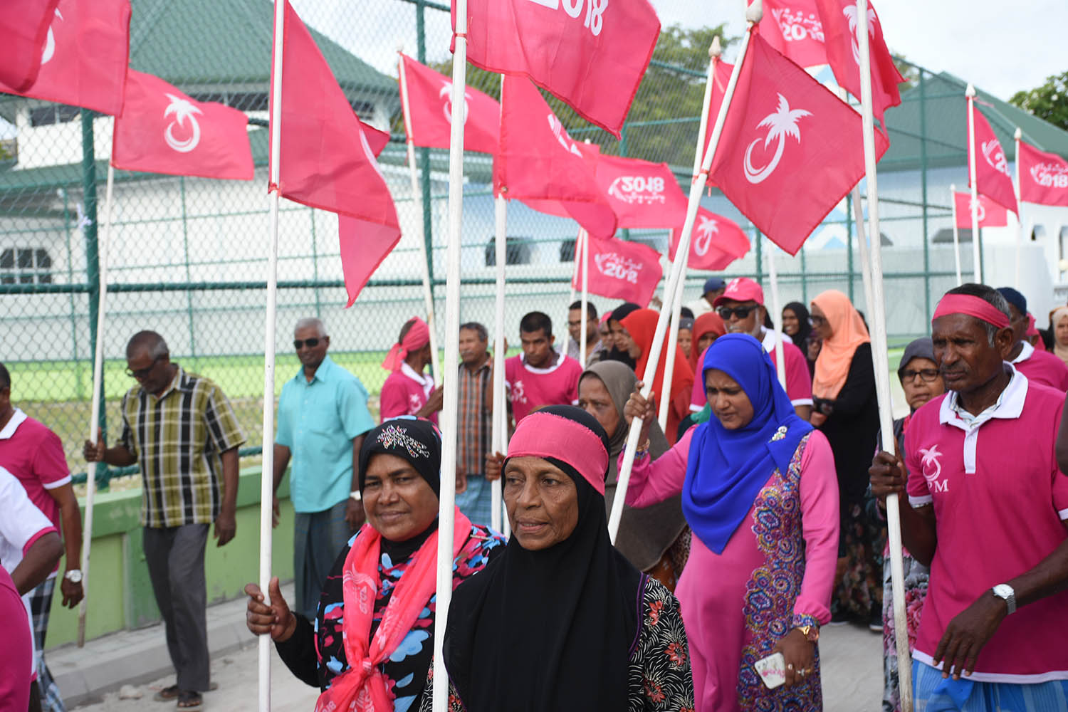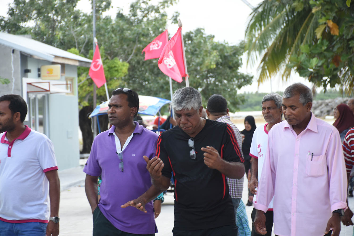 ބ. އޭދަފުށި، އޮގަސްޓް 27، 2018- މި އަހަރުގެ ރިޔާސީ އިންތިޚާބުގައި ޕީޕީއެމުން ވާދަކުރައްވާ ކެންޑިޑޭޓު ރައީސް އަބްދުﷲ ޔާމީންއަށް ތާއީދު ކުރުމުގެ ގޮތުން ޕީޕީއެމް އޭދަފުށީ ގޮފިން ބޭއްވި ހިނގާލުން: މި ހިނގާލުމުގެ ބައިވެރިން ބުނީ އެއްލަކިން ރައީސް ޔާމީން މި އިންތިހާބު ކާމިޔާބުކުރާއްވާނެ ކަމަށް. ހިނގާލުމުގައި 80 ވަރަކަށް މީހުން ބައިވެރިވި .- އީޓީ ފޮޓޯތައް: ތޯރިގް އަބްދުއްރަހްމާން