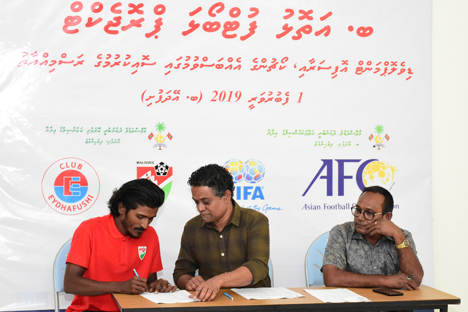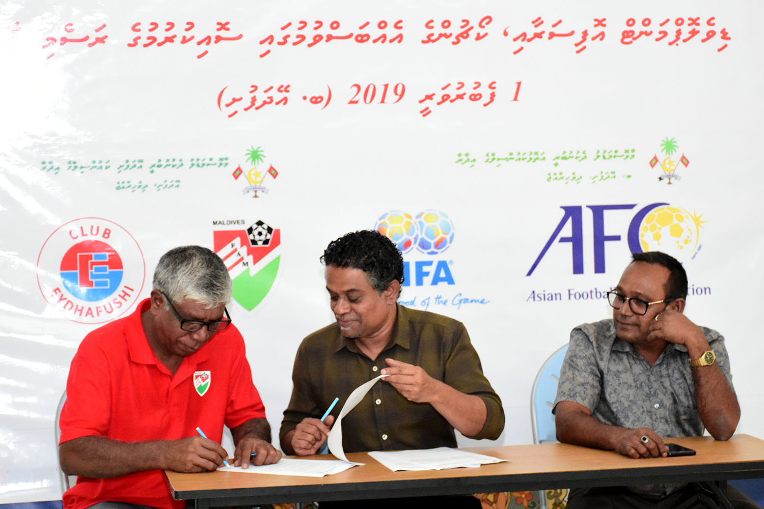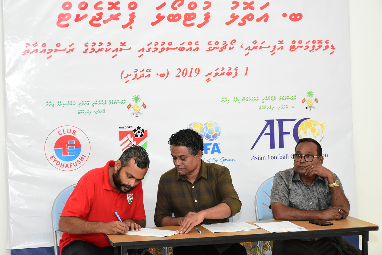 ބ. އަތޮޅު ފުޓްބޯޅަ ޑިވެލޮޕްމަންޓް އޮފިސަރާއި ކޯޗުންގެ އެއްބަސްވުމުގައި ސޮއިކުރުން އޭދަފުށި ޓައިމްސް 2 ފެބްރުއަރީ 2019 ފޮޓޯ ގެލެރީ