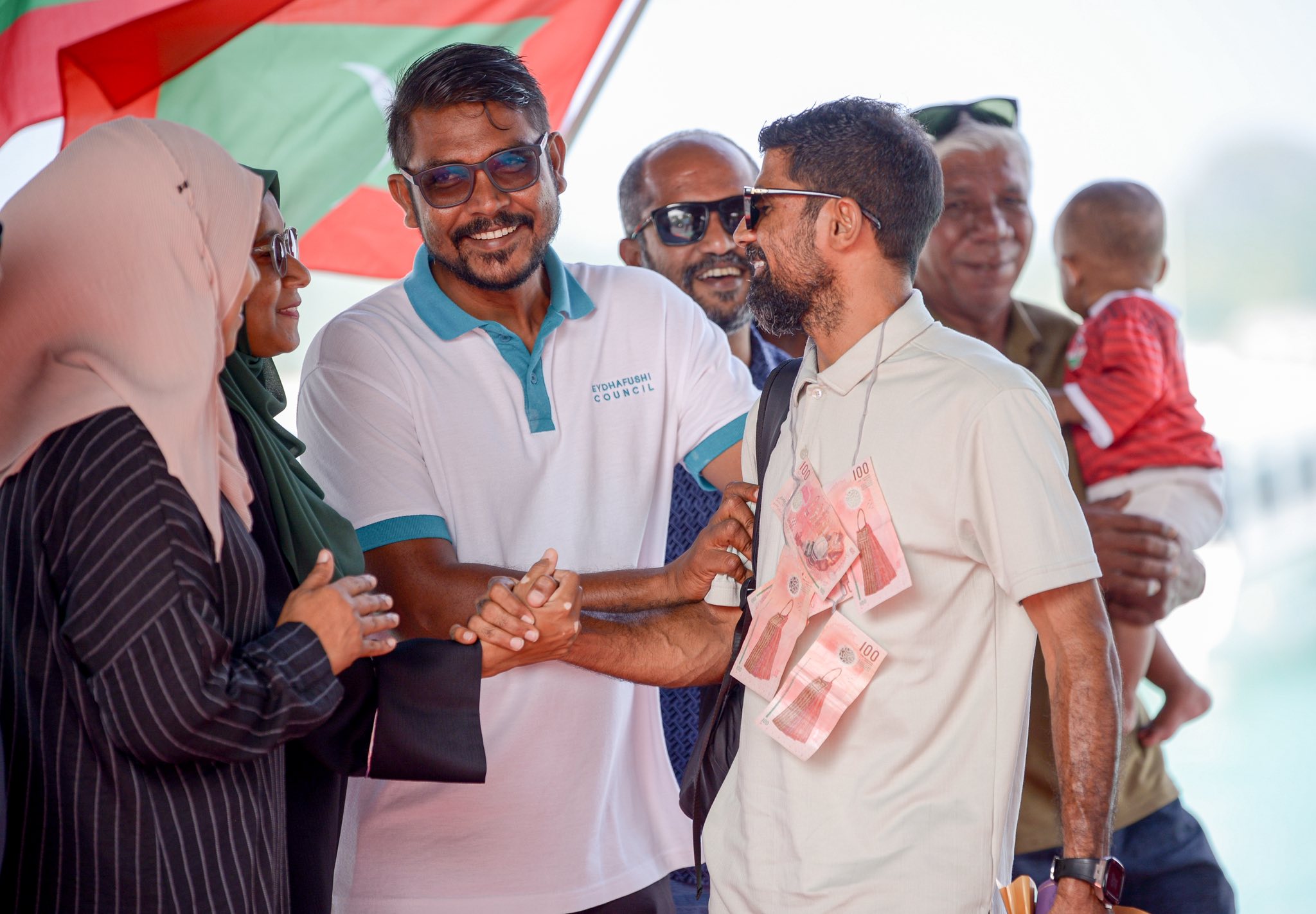 ސައްޓު އިއްޔެ މެންދުރުފަހު އޭދަފުއްޓަށް ދިއުމުން އޭނާއަށް މަރުހަބާ ކިޔުމަށްޓަކައި ބަނދަރު ސަރަހައްދަށް ގިނަ އަދަދެއްގެ ބަޔަކު ވަނީ އެއްވެފައެވެ. މީގެ ތެރޭގައި ސައްޓުގެ އާއިލާގެ މެންބަރުންނާއި، ރަށުގެ އާންމު ރައްޔިތުންގެ އިތުރުން ސަރުކާރުގެ އެކި އޮފީސްތަކާއި މުއައްސަސާތަކުގެ މުވައްޒަފުން ބައިވެރިވެފައިވެއެވެ.